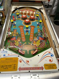 Windmills & Loop-d-loops” are replaced with an 8-ft diameter Ferris Wheel, a 14-ft long golf ball roller coaster & a golf-thru, glow-in-the-dark Haunted House. Imagine putting through the funny mirrors of the famed Mirror Maze, or getting a hole in one with a golf ball-sized Skee Ball Game! Try your luck getting your golf ball past the Dodgem cars, a whirl thru the Chutes “Love Tunnel” or landing it in Jean Jone’s “Guess Your Weight & Age” swing for a FREE round of mini golf OR a Chalk Kewpie Doll reproduction.